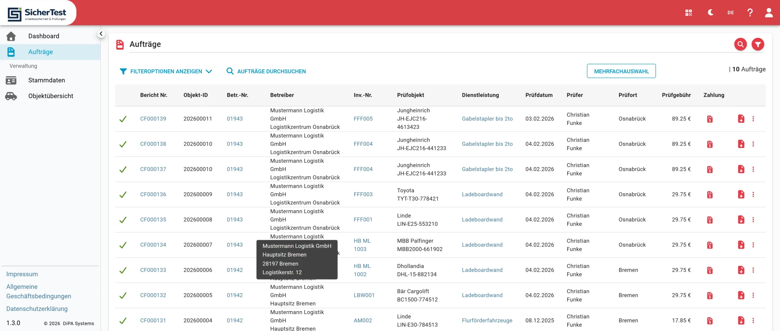 Stellen Sie Ihren Auftraggebern alle Prüfberichte, Aufträge und Prüfobjekte zentral online bereit.